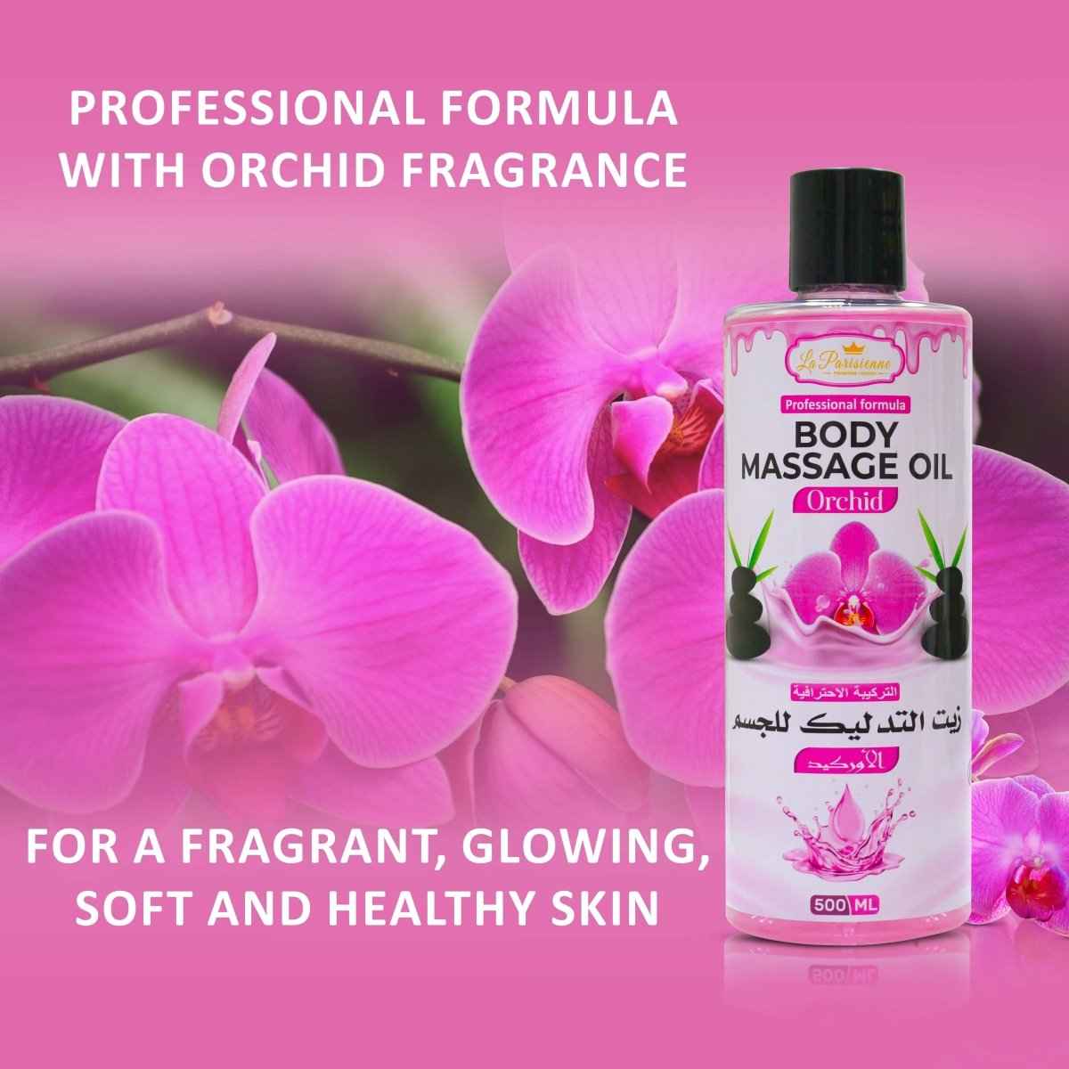 La Parisienne Body Massage Oil, Professional Formula (500 ml) Experience the ultimate relaxation and rejuvenation with La Parisienne Body Massage Oil. Crafted with a professional formula, this luxurious oil is designed to enhance circulation, relieve stress, and help you feel beautiful inside and out. Enriched with premium, skin-loving ingredients, it deeply nourishes and revitalizes your skin, leaving it soft, smooth, and hydrated. This versatile oil delivers an indulgent spa-like experience, perfect for relaxing massages or daily moisturizing. Its lightweight yet deeply penetrating texture ensures easy application without leaving a greasy residue. The refreshing fragrance invigorates the senses, while its soothing properties help to calm the mind and body, making it an ideal companion for self-care routines. Key Benefits: Enhanced Circulation: Boosts blood flow for healthier skin. Stress Relief: Promotes relaxation and reduces tension. Deep Moisturization: Restores hydration, leaving skin supple and radiant. Revitalized Skin: Improves texture and tone for a youthful glow. Transform your skincare routine with La Parisienne Body Massage Oil and enjoy a moment of pure bliss every day. Perfect for personal use or as a thoughtful gift.