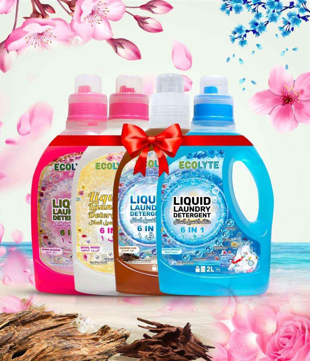 Welcome to the fresh, vibrant world of our liquid laundry detergent pack. Designed to elevate your laundry experience, this unique collection features captivating scents: Ocean Breeze, Spring Blossom, Morning Oud, and Royal Roses. Each 2-liter pack is a powerhouse of cleaning performance, ready to tackle your toughest stains while leaving your laundry smelling delightful.